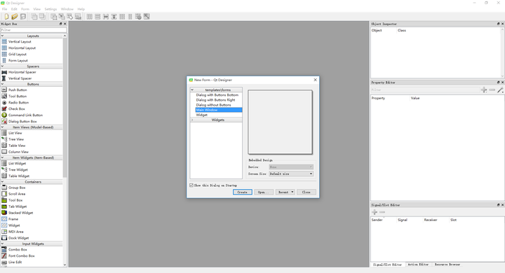 在模板选项中,最常用的是 Widget (通用窗口) 和 Main Window (主窗口)。