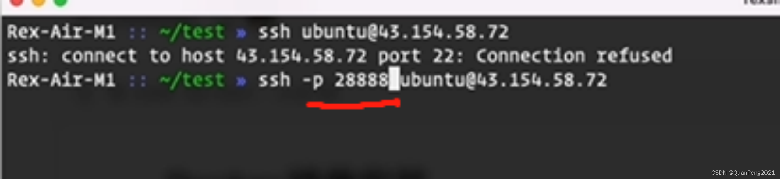 然后重启,重新连接服务器的时候就会连接失败,这个时候只要加上端口号在IP之前