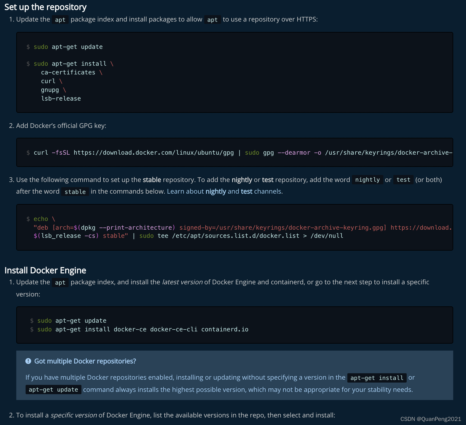 之后下滑页面找到Set up the respository ,可以看到一共有四步。