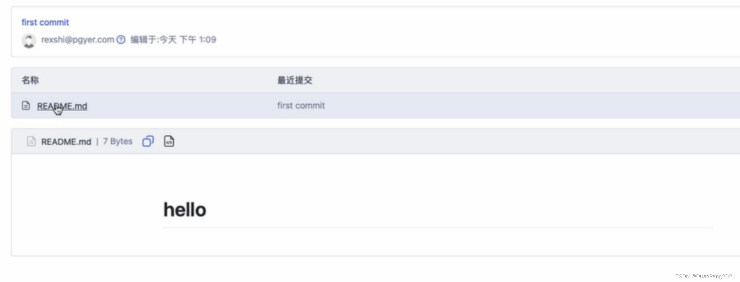 完成后发现没有出错,那么说明这个readme文件已经push到我们的远程仓库中了。