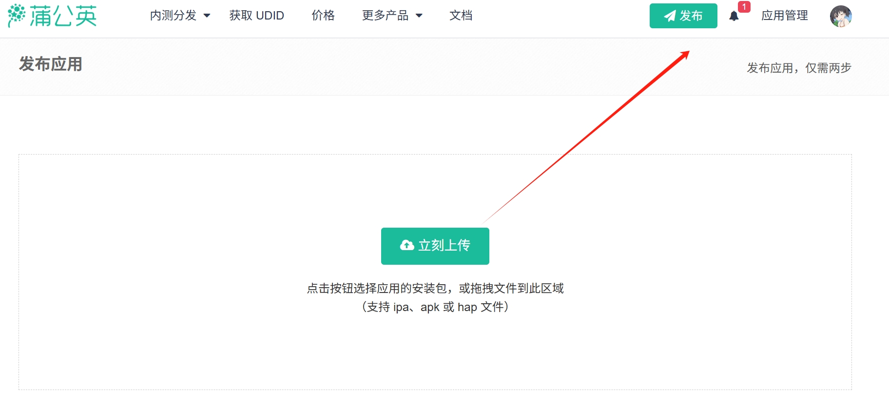- .hap 文件必须是已签名版本,签名步骤需使用华为 DevEco-Studio 等工具完成。upload.pgyer.com