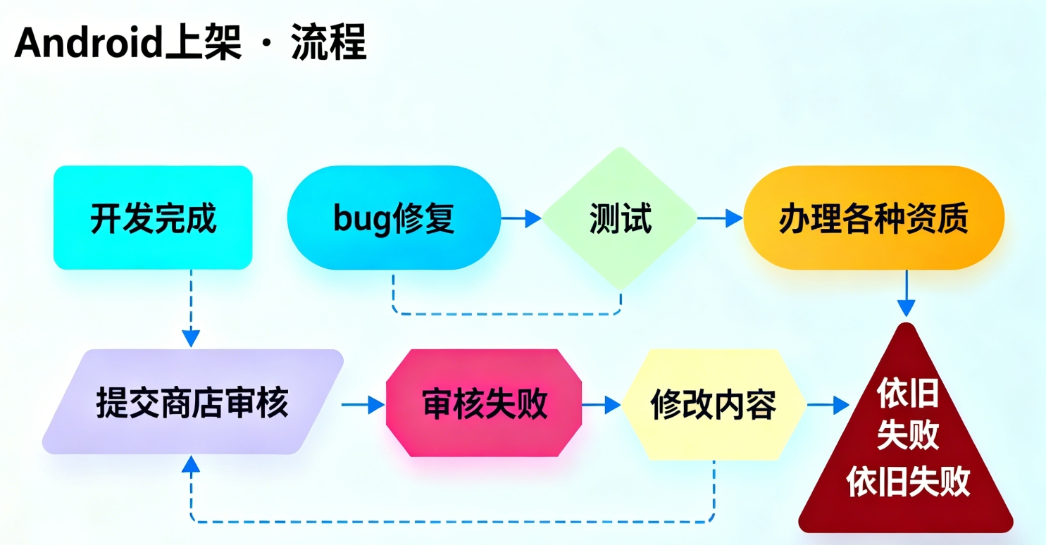 - 审核跟进:全程跟踪上架进度,遇到驳回问题(如权限过度申请)提供修改建议,直到成功上架。