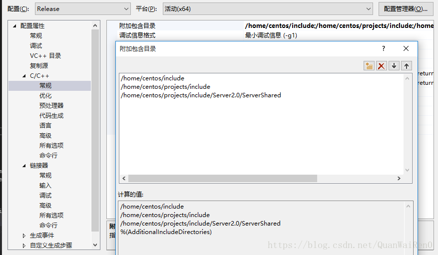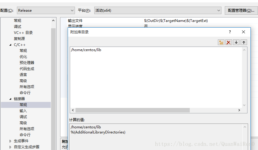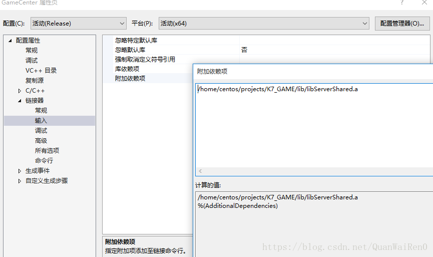 设置依赖的.so文件, 因为vs2017是调用远程的g++来编译,所以此处的库名也要去掉前缀名和后缀名