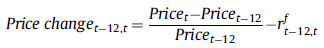 对于每一种交易策略(k.h)(该策略考虑全部标的),我们都生成一个独有的月度收益时间序列。因此我们没有重叠的观测。生成方法采用 Jegadeesh and Titman(1993)的方法:t 时刻的收益为该时刻全部持仓的平均收益,包括上个月开的仓,再上个月开的仓等等,只要仍然在持有。我们记这个收益为