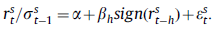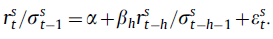 我们用滞后 h 月的标的收益对标的 S 在 t 月的超额收益 rst 做回归,上述收益均用预估波动率进行调整。公式如下: