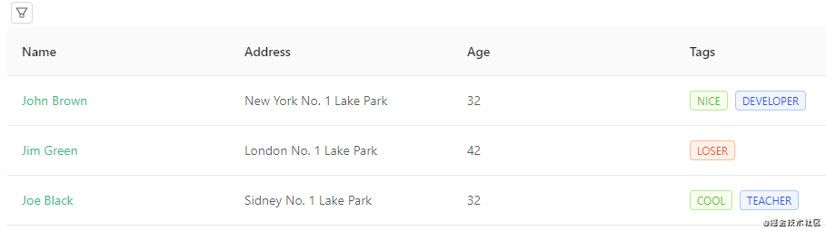 ant design组件库中Table组件的用法,本文不再展开 - 本文不展开介绍