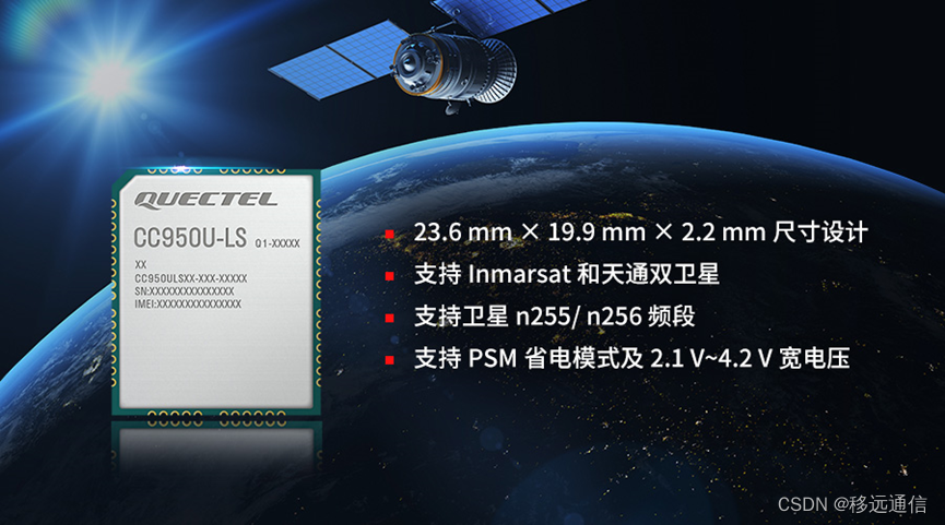6月29日,在2023上海世界移动通信大会期间,物联网整体解决方案供应商移远通信正式宣布,推出符合3GPP NTN R17标准的全新5G卫星通信模组——CC950U-LS。该产品面向国内物联网市场,将为蜂窝网络无法覆盖的森林、海洋、沙漠等偏远地区或运输等特殊应用场景,提供不间断的通信网络覆盖和无缝连接。CC950U-LS目前可提供样品供客户进行测试。