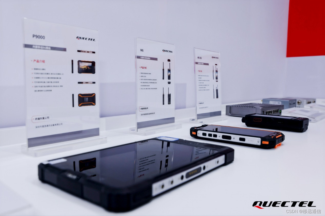 展会上,移远通信带来了多款搭载移远产品和解决方案的前沿物联网终端,包括内置移远5G模组的5G工业路由器、电力外置5G DTU、工业网关、三防平板、数字对讲机,内置移远智能模组的边缘计算盒子,以及内置移远高算力模组的人脸识别一体机等,极大展现了移远通信作为物联网整体解决方案供应商的强大的研发实力和产品商用能力。