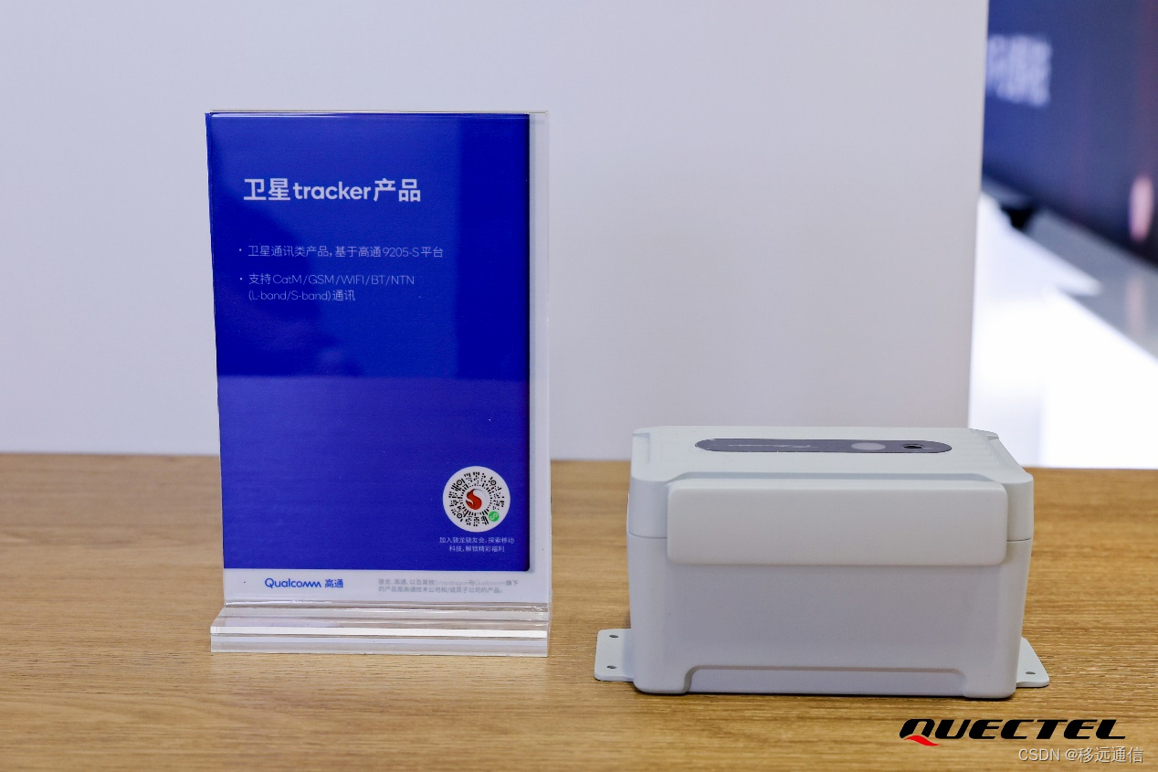 与此同时,基于MDM9205-S平台,移远与高通联合开发的卫星tracker产品——QTS110S,也在高通展台亮相,该产品支持Cat M、GSM、Wi-Fi、蓝牙通信协议,以及NTN(L频段/S频段)双向卫星通信,拥有先进的定位技术,可实现超低功耗运行,适用于设备跟踪、冷链监测、集装箱货物追踪等全球资产跟踪场景。