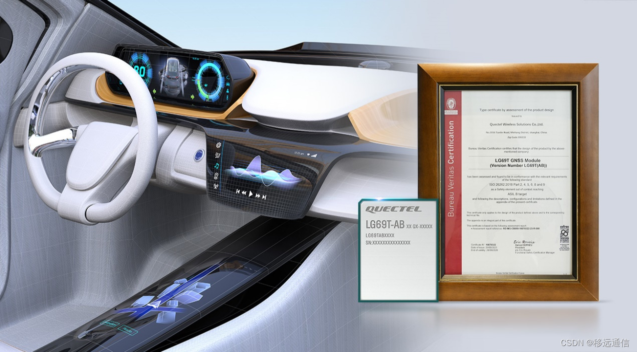 移远通信获得ISO26262ASILB流程和LG69T产品认证,展示了其在车载领域的安全能力,LG69T车规级GNSS模组助力智能驾驶向更高层级发展。