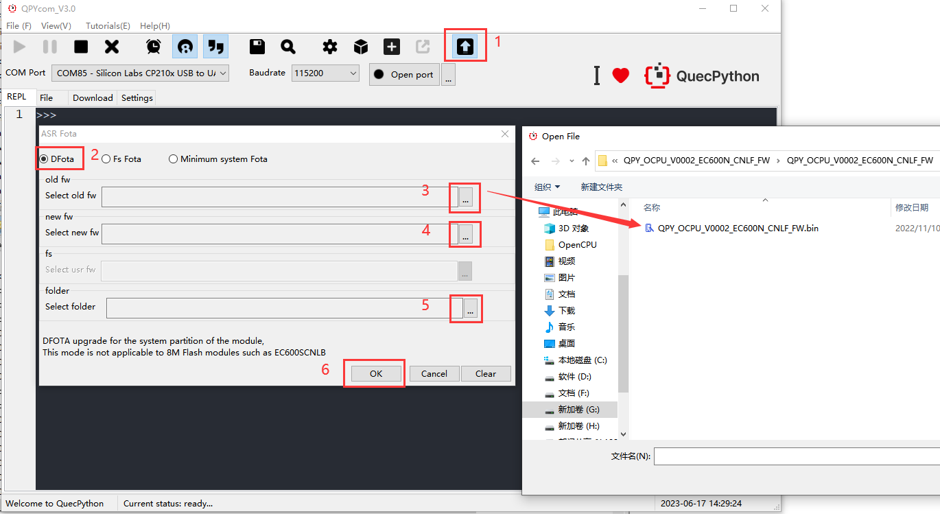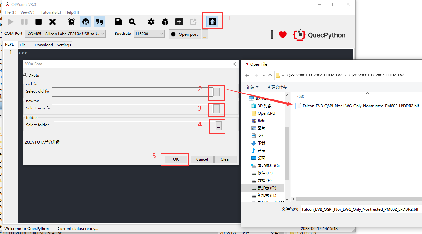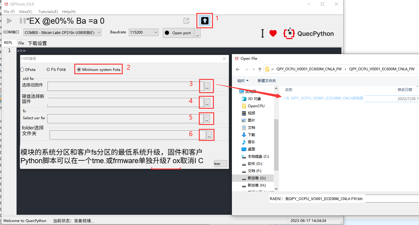 1、点击升级按钮,选择200A Fota,弹出对话框。