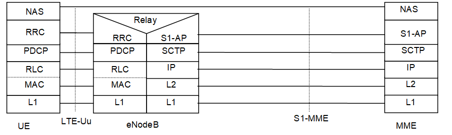 下图是LTE网络架构中,控制面的协议栈分层结构示意。