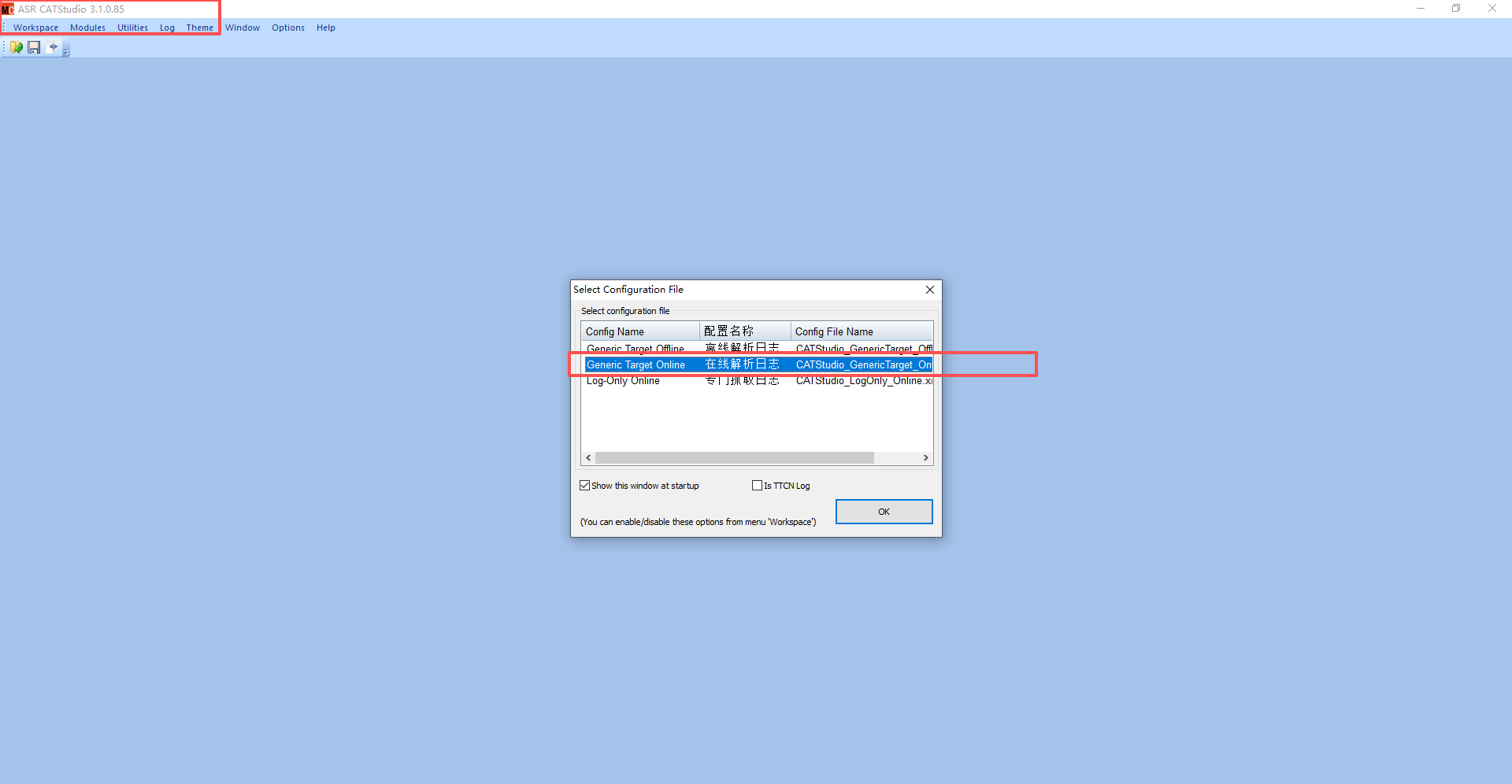 打开Catstudio软件,在主界面选择“在线解析日志”功能。