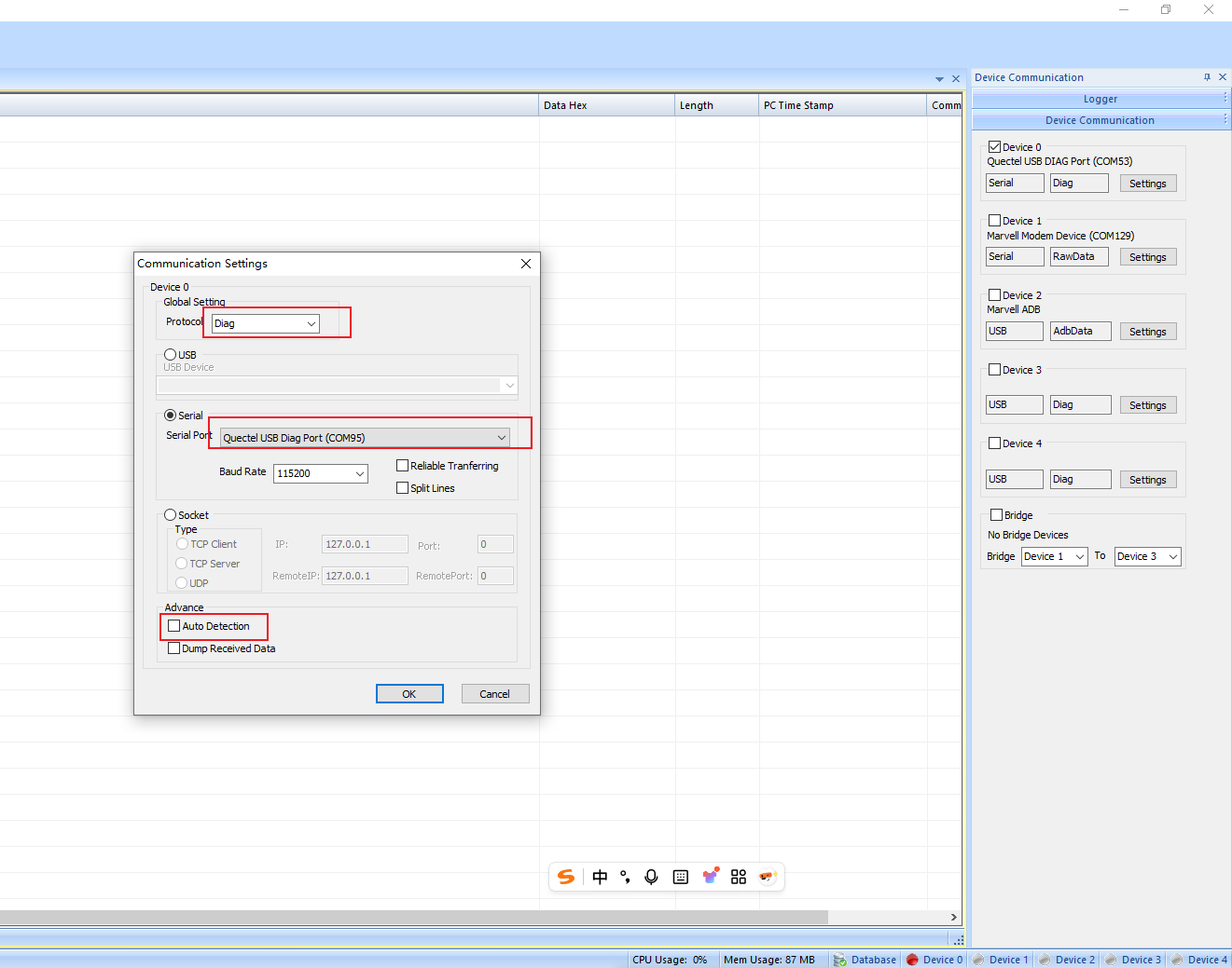 特殊处理:如果连接设备后未显示对应端口,请取消勾选"Auto Detection"(自动检测)
