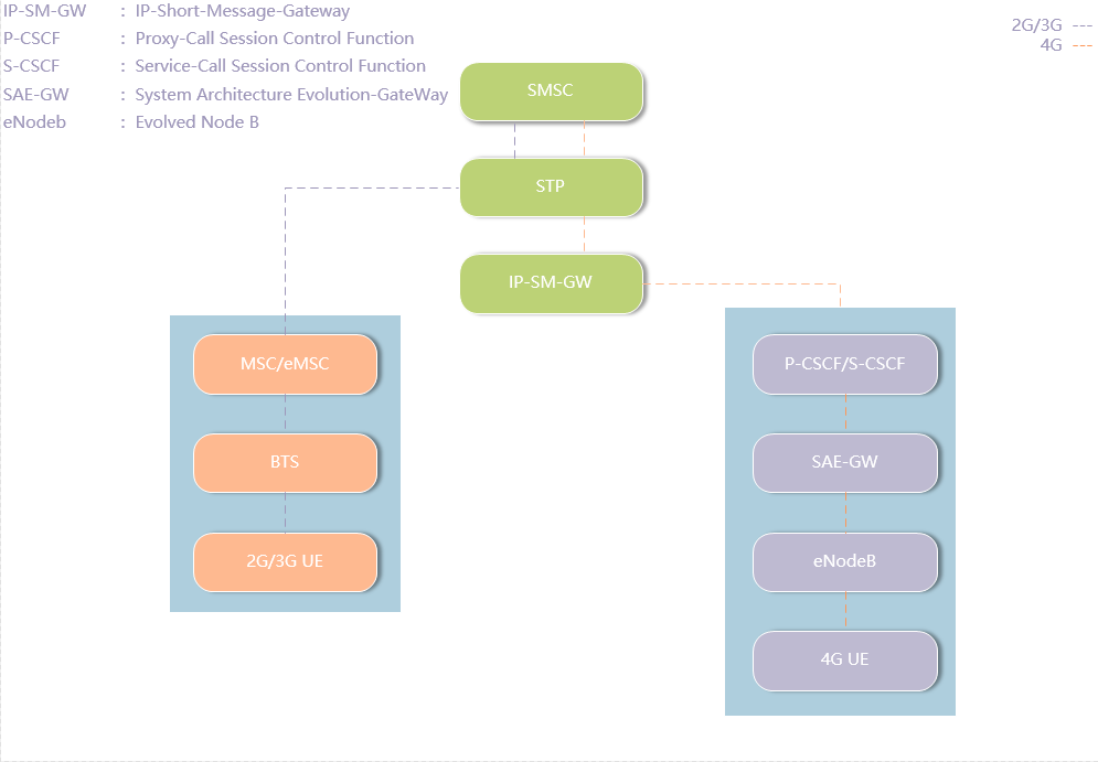 2G时代采用比较复杂的CS/PS域架构,SMS(短信)作为上个世纪的产物,一直寄居在2G的CS域架构下。2G/3G时代网络部署的短信网元为SMSC,主要用于短信的存储和转发,在各运营商中数量众多。