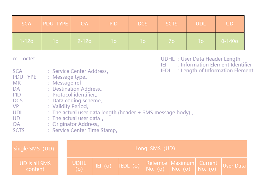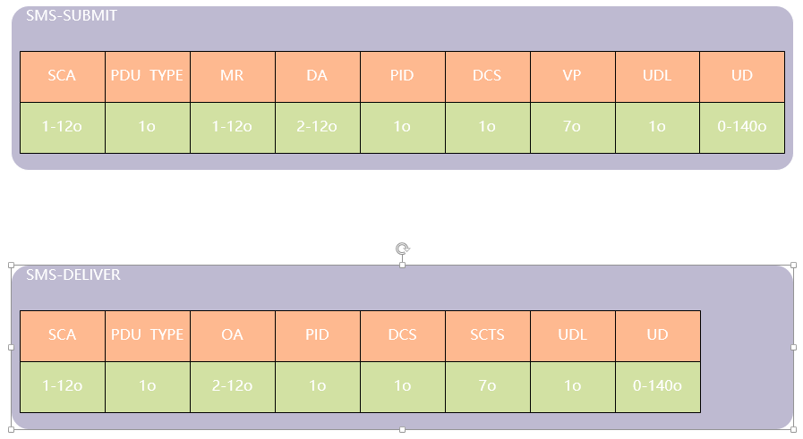 以下介绍简单介绍SMS-SUBMIT,SMS-DELIVER两种类型,详细内容参考3GPP TS 03.40 协议文档。