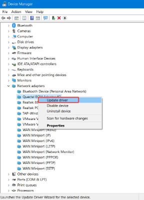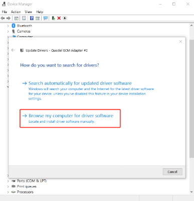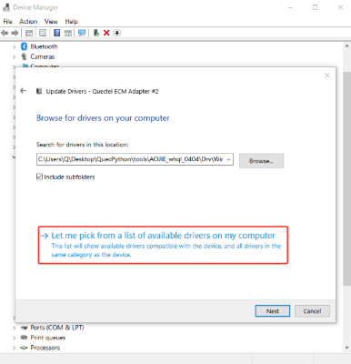 设备管理器界面,选择网络适配器,选择Quectel ECM Adapter,右键选择更新驱动