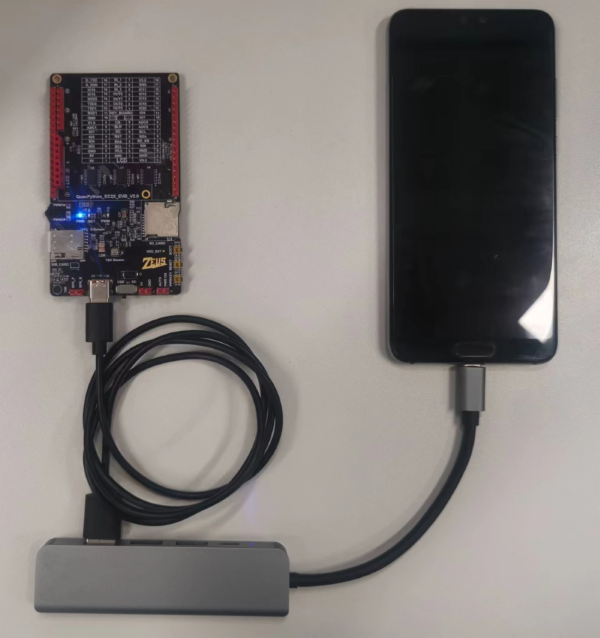 通过电脑配置好开机启动后,将 USB 口接到手机上的 Type-C 口,并按 PWRKEY 键给模组上电。请自行准备转接线。