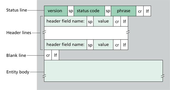 sp表示空格,crlf表示回车与换行,响应首部与消息体之间必须插入一行空行,即图示的Blank line。