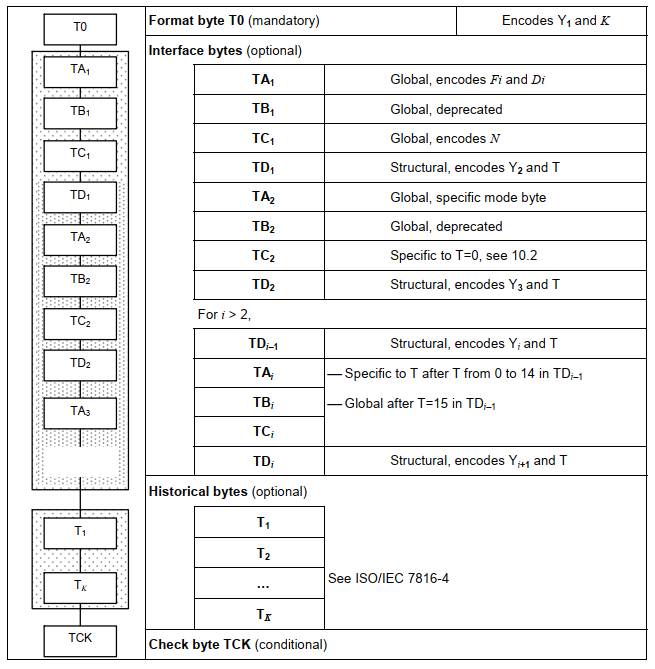 ATR最多由32字节组成(不包含起始字符TS),其结构如下图所示: