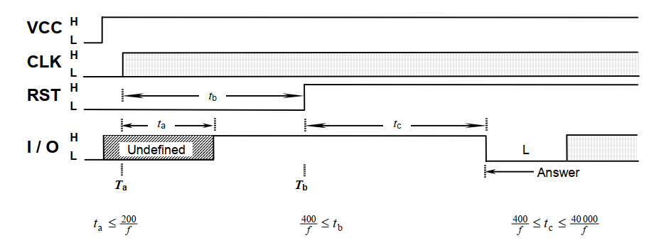 ME将RST置为高电平,等待SIM卡从I/O上返回ATR响应。