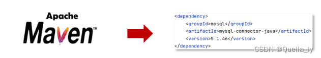 如上图右边所示就是mysql驱动包的坐标,在项目中只需要写这段配置,其他都不需要我们担心,Maven都帮我们进行操作了。