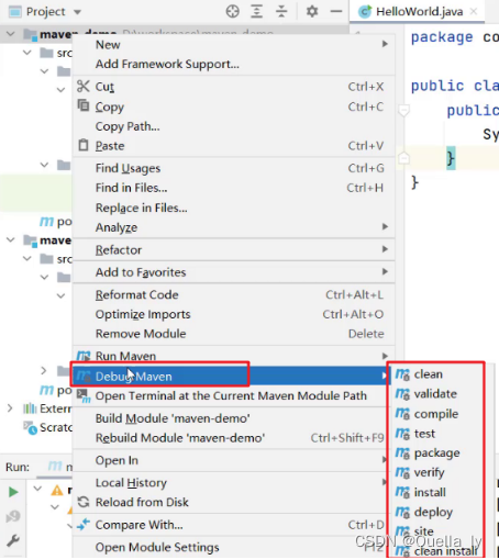 同一套生命周期内,执行后边的命令,前面的所有命令会自动执行。例如默认(default)生命周期如下: