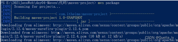 当我们执行 package (打包)命令时,它会先执行 compile 命令,再执行 test 命令,最后执行 package 命令。