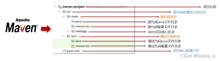 项目结构我们都知道,每一个开发工具(IDE)都有自己不同的项目结构,它们互相之间不通用。我再eclipse中创建的目录,无法在idea中进行使用,这就造成了很大的不方便,而Maven提供了一套标准化的项目结构,所有的IDE使用Maven构建的项目完全一样,所以IDE创建的Maven项目可以通用。如下图右边就是Maven构建的项目结构。
