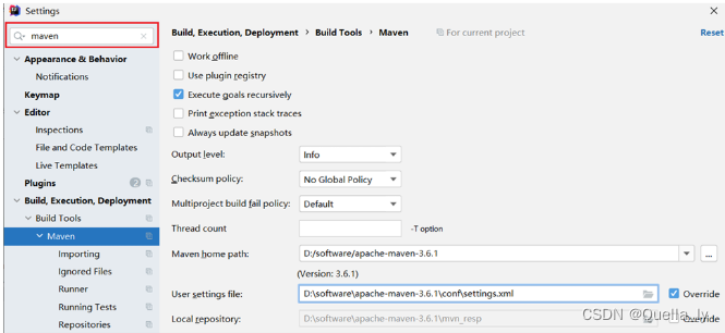 当项目中使用坐标引入对应依赖jar包后,首先会查找本地仓库中是否有对应的jar包: