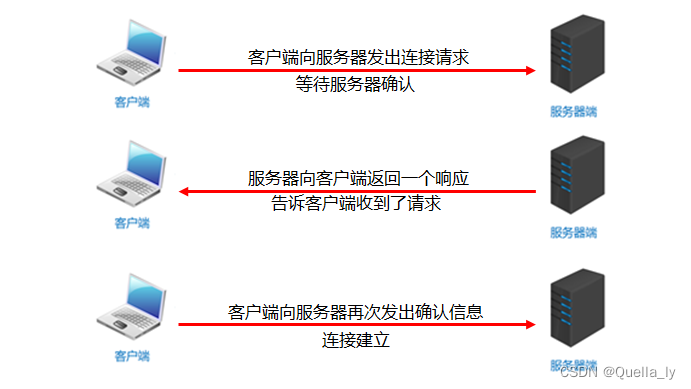 三次握手:TCP协议中,在发送数据的准备阶段,客户端与服务器之间的三次交互,以保证连接的可靠