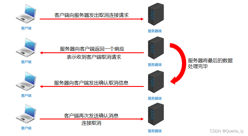 最后一步断开连接,通过四次挥手协议保证连接终止