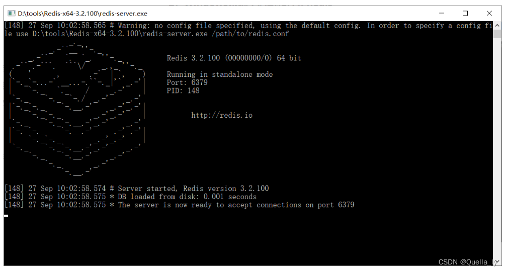 通过启动日志可以看到,Redis默认端口号为==6379==。