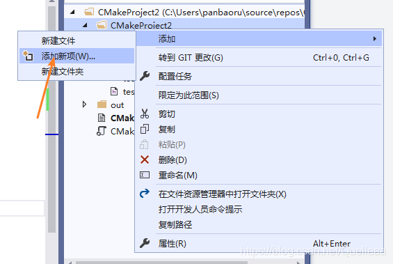 当在解决方案资源管理器的项目添加新项,当添加cpp文件,CMakeList.txt会自动更新新增cpp文件