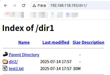 # 可以看到该http服务下面有dir2/目录和test1.txt文件