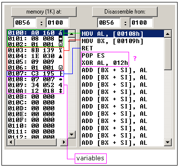 VAR1变量的偏移是0108h,物理地址是0b56:0108var2 变量的偏移是0109h,物理地址是 0b56:0109