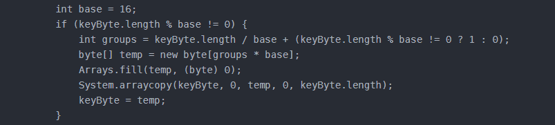 int groups = keyByte.length / base + (keyByte.length % base != 0 ? 1 : 0);