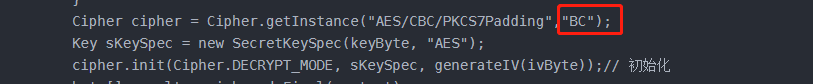 Cipher cipher = Cipher.getInstance("AES/CBC/PKCS7Padding","BC");