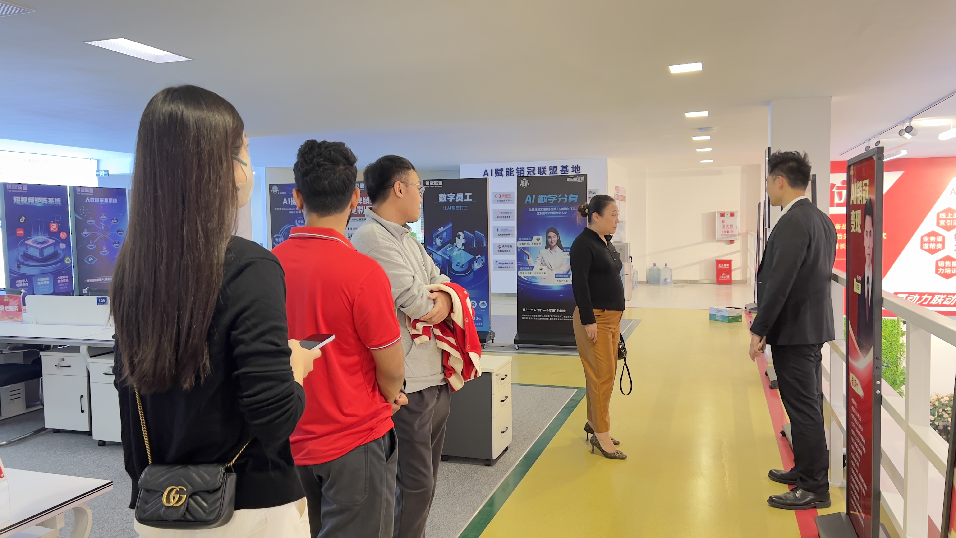 居间部门负责人方总带领“名品箱包”团队参观销冠联盟线下超6000㎡实体展厅,并耐心讲解居间销售的架构和联盟的生态链条。