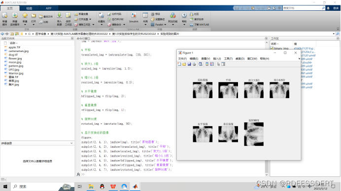 3.读取彩色图像:胸片.jpg,分别对其进行平移、放大1.5倍 、缩小0.5倍、水平镜像、垂直镜像、旋转90度等操作,请编程实现。