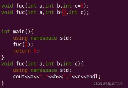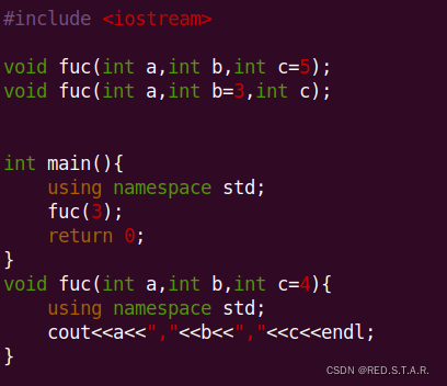 其次,函数可以进行多次声明,而声明多次都可以给不同形参指定默认值。