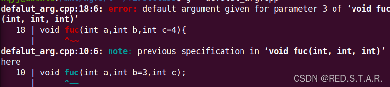 最后,C++ 规定,在给定的作用域中只能指定一次默认参数 。如图
