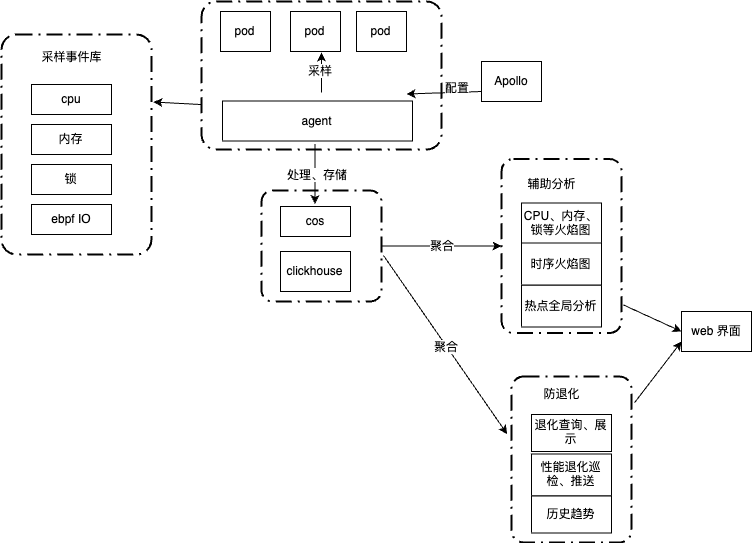 核心思路是通过对业务进程进行持续性的采样、处理、存储,并基于采样数据做分析,来辅助性能优化和发现性能退化。