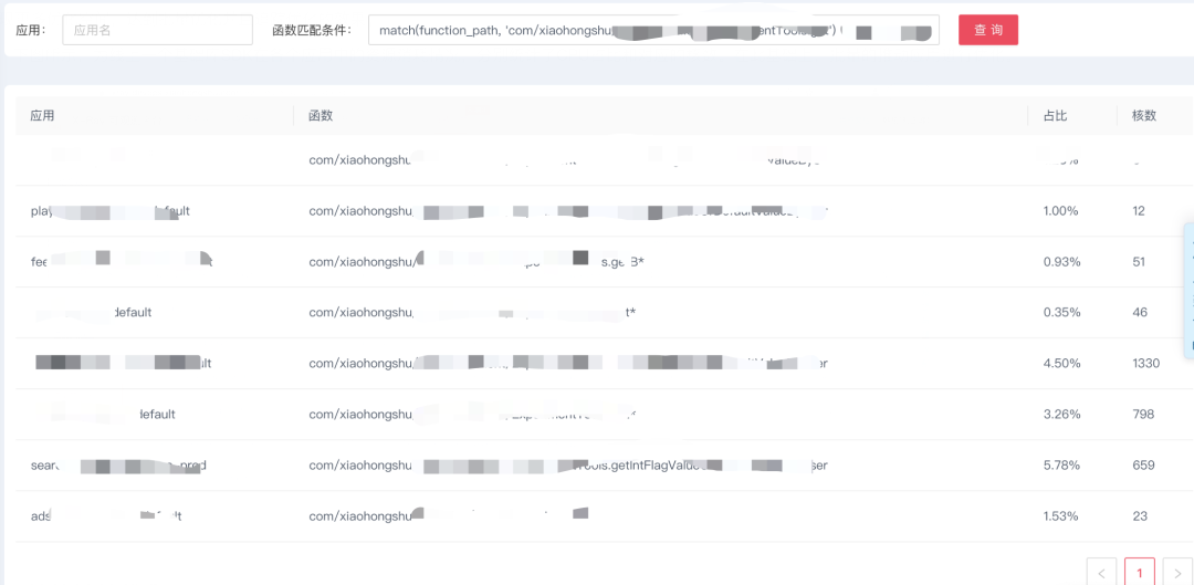 下图所示,为线上一个基础库 SDK 在各个应用中的资源消耗情况,分别统计了 CPU 占比和对应的核数。在此基础上,批量的推动应用进行优化。