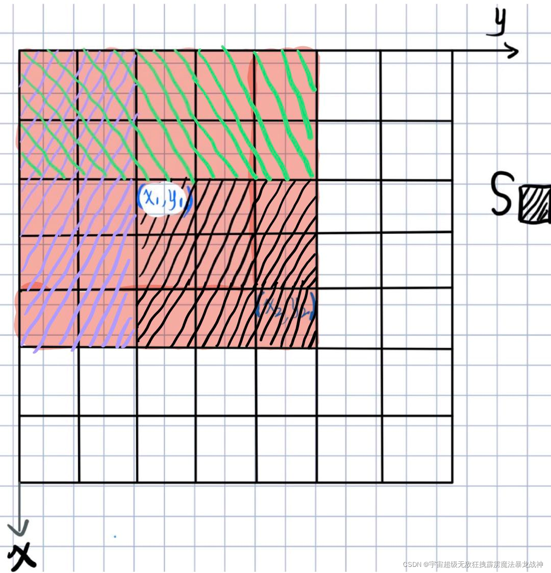 //S[i,j] = 第i行第j列格子左上部分所有元素的和