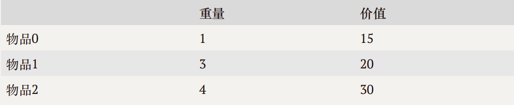 第 i件物品的体积是 vi,价值是 wi。求解将哪些物品装入背包,可使这些物品的总体积不超过背包容量,且总价值最大。输出最大价值。(下图是例子,一下分析均由此图得来)