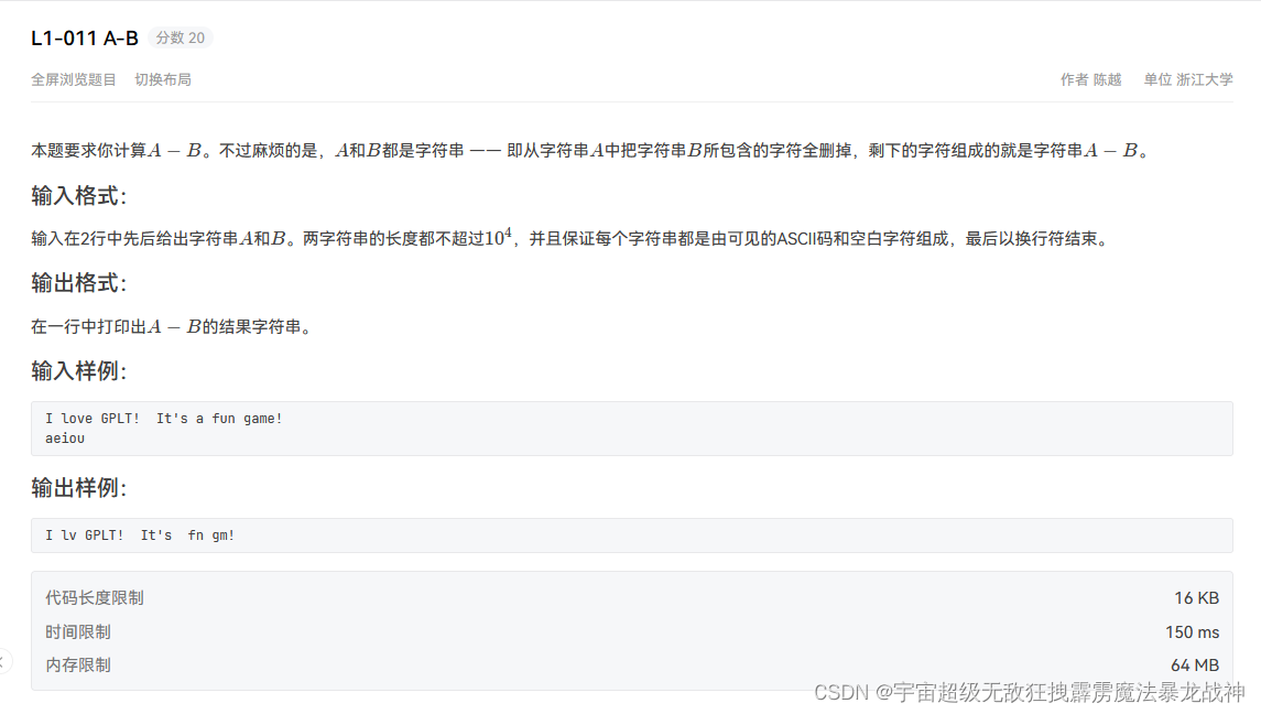 // 将ascii码不为1的字符输出,即为A-B的结果