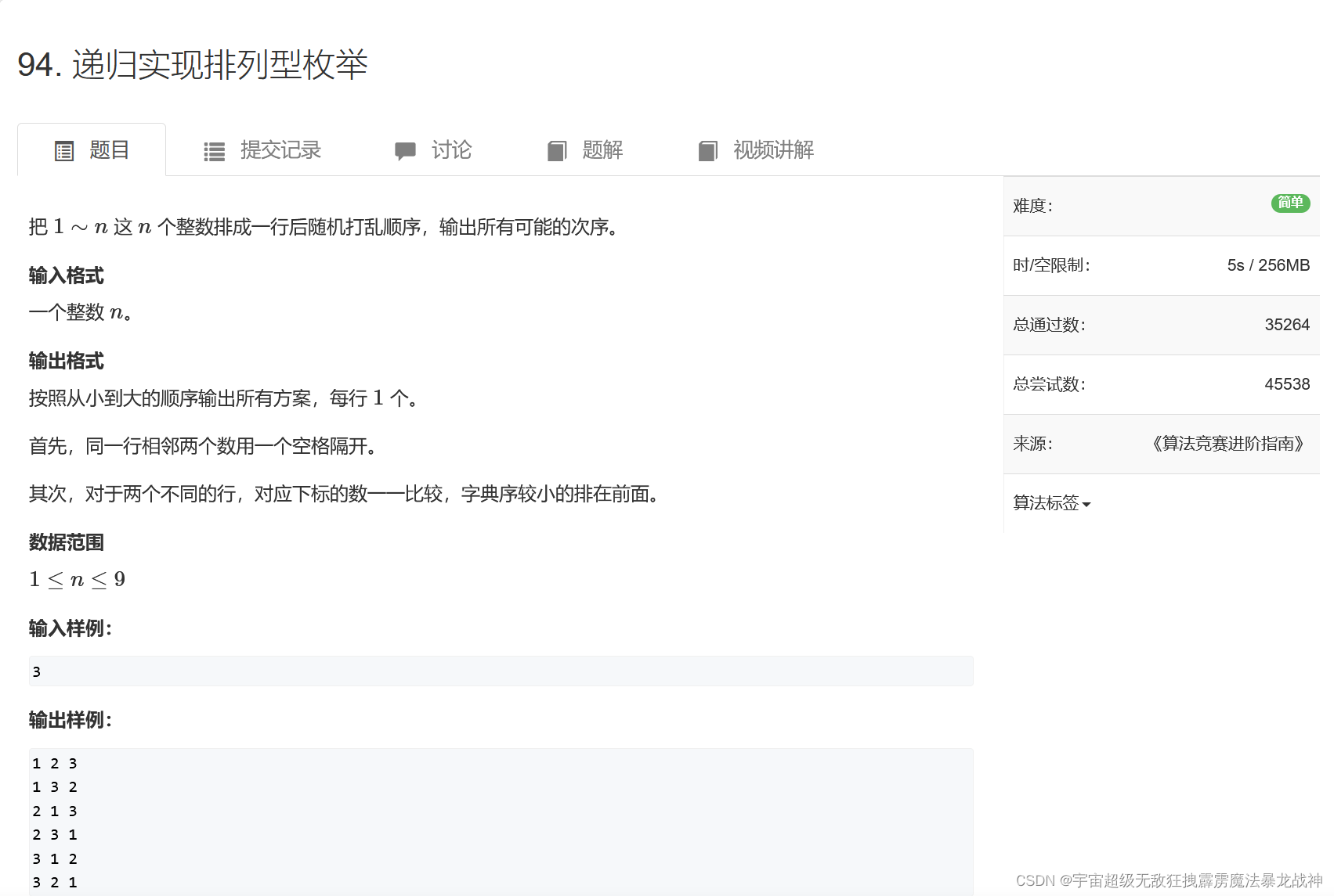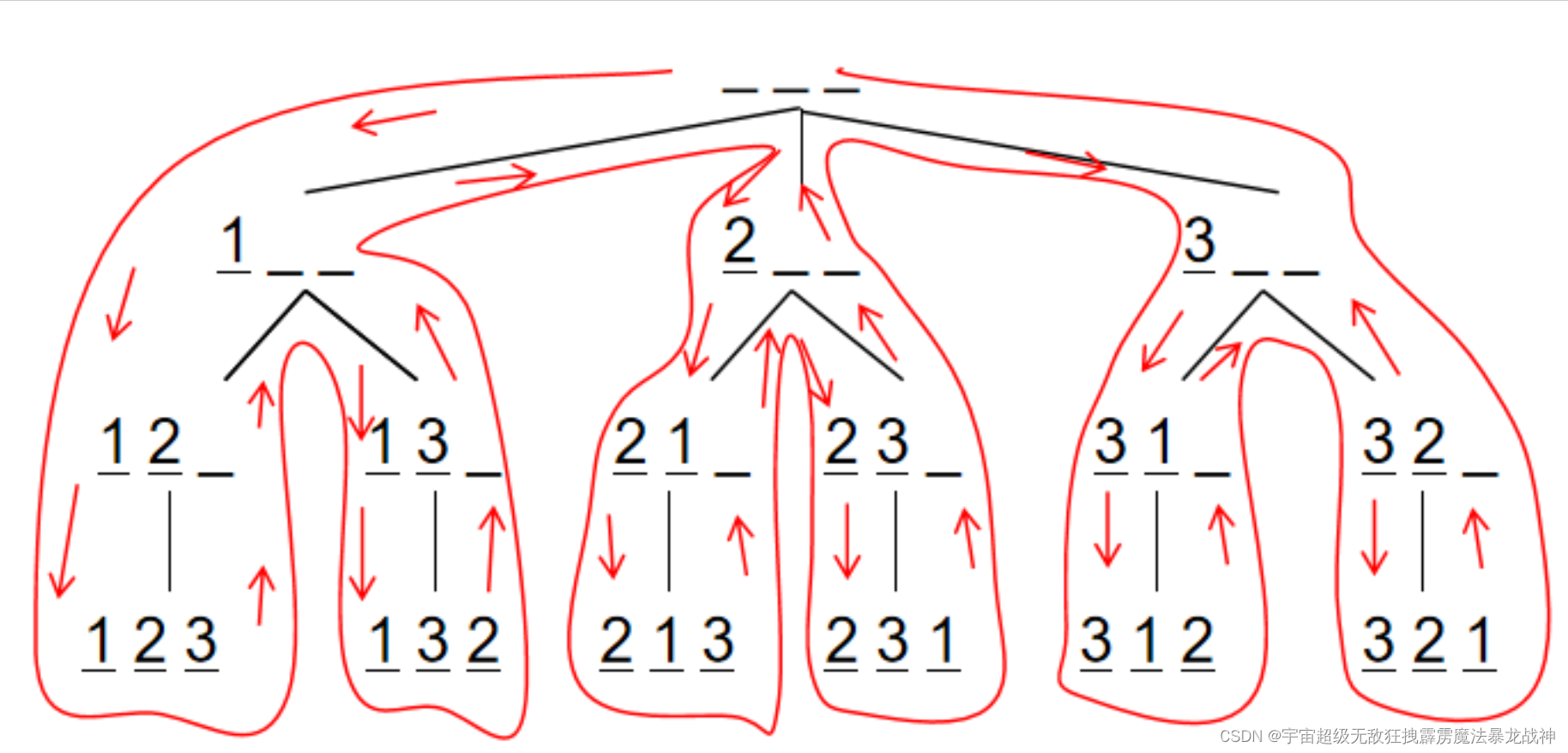 思路:枚举每一个位置可以放1~n中那个数字,选好递归进入下一层,当pos > n时,nnum数组已经可以输出一个方案,然后回溯,去其他分支dfs,同理,输出另一方案,全部输出完之后,结束战斗。