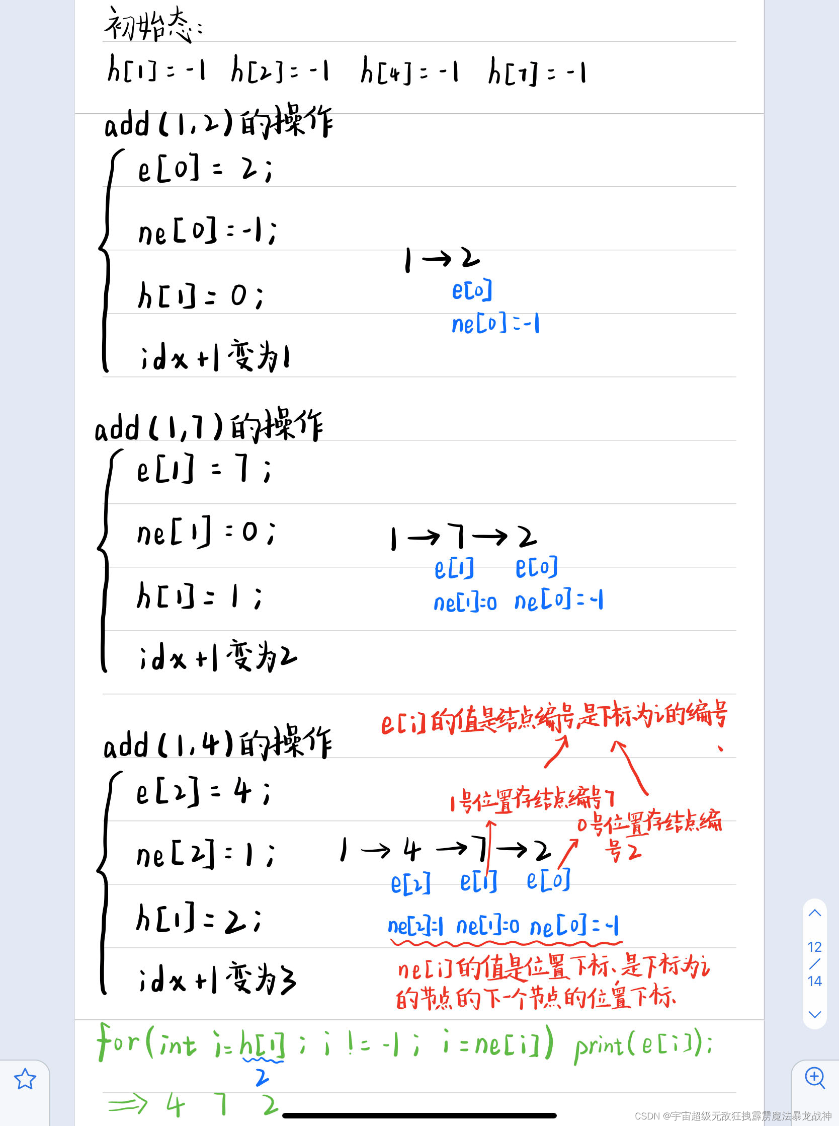static int ne[] = new int[N]; // ne[i]的值是下标,是下标为i的节点的next节点的下标。