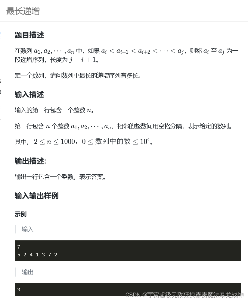 // 暴力枚举区间的左端点和右端点,更新递增区间的最大长度